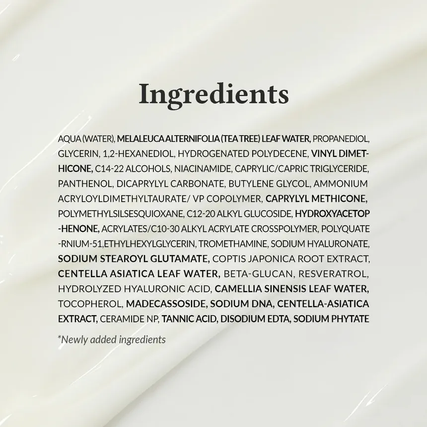 • Niacinamida – Ayuda a unificar el tono y regular el sebo.